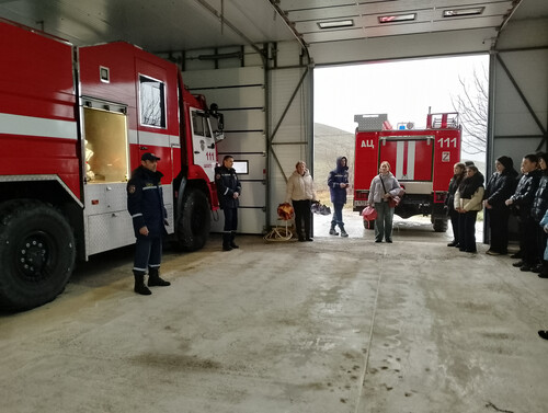 В ходе экскурсии работники МСЧ провели противопожарный инструктаж с детьми и учителями, в ходе которого им объяснили основные правила пожарной безопасности и как правильно применять первичные средства пожаротушения. Не забыли напомнить и о том, что работает экстренный вызов «112» и что единый номер пожарной охраны «01» с сотовой связи «101». Затронули тему и о телефонном хулиганстве, телефонном терроризме и их последствиях. Также не забыли повторить правила дорожного движения и что обязательно в темное время суток нужно носить светоотражающие элементы, как взрослому, так и ребенку.