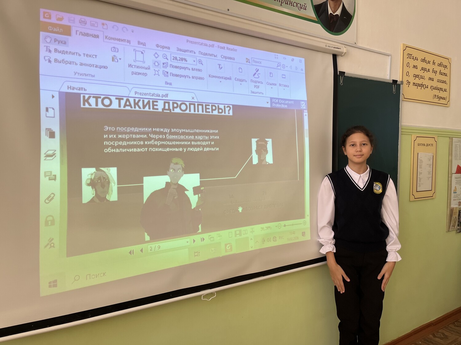 В рамках обучения по ДПП ПК «Организация системы профилактики финансового мошенничества в отношении обучающихся образовательных организаций Республики Крым» в школе был проведен тематический урок на тему: "Дропперы: как не стать помощником кибермошенничества". Обучающиеся 5 и 9 класса с интересом прослушали важный и актуальный материал, просмотрели познавательный мультфильм "Пожиратели мозга, просмотрели и обсудили материал презентации.