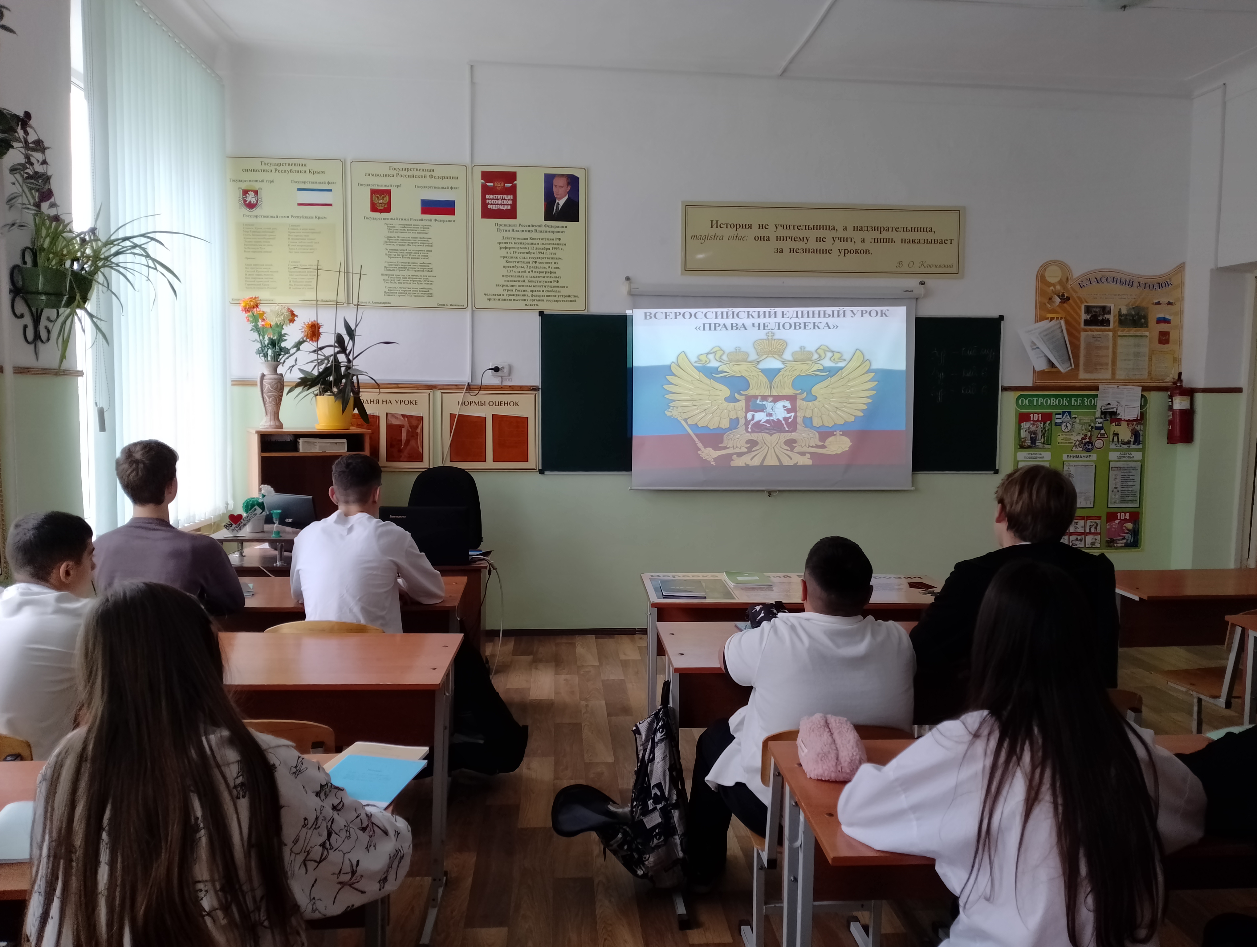 Масштабный образовательный проект - Всероссийский единый урок «Права человека» проводится по инициативе Уполномоченного по правам человека в Российской Федерации, начиная с 2017 года. Проведение Единого урока приурочено ко Дню прав человека, который ежегодно отмечается в России и во всем мире 10 декабря. В этот день в 1948 году Генеральная Ассамблея ООН приняла Всеобщую декларацию прав человека - важнейший международный правозащитный документ. Символично, что всего два дня отделяют День прав человека от нашего важного государственного праздника, Дня Конституции Российской Федерации. В Основном законе РФ нормативно закреплены права и свободы россиян. В преддверии Дня прав человека, 8-9 декабря 2025 года в МБОУ Щебетовская школа им. М.А. Македонского прошел Всероссийский единый урок "Права человека".